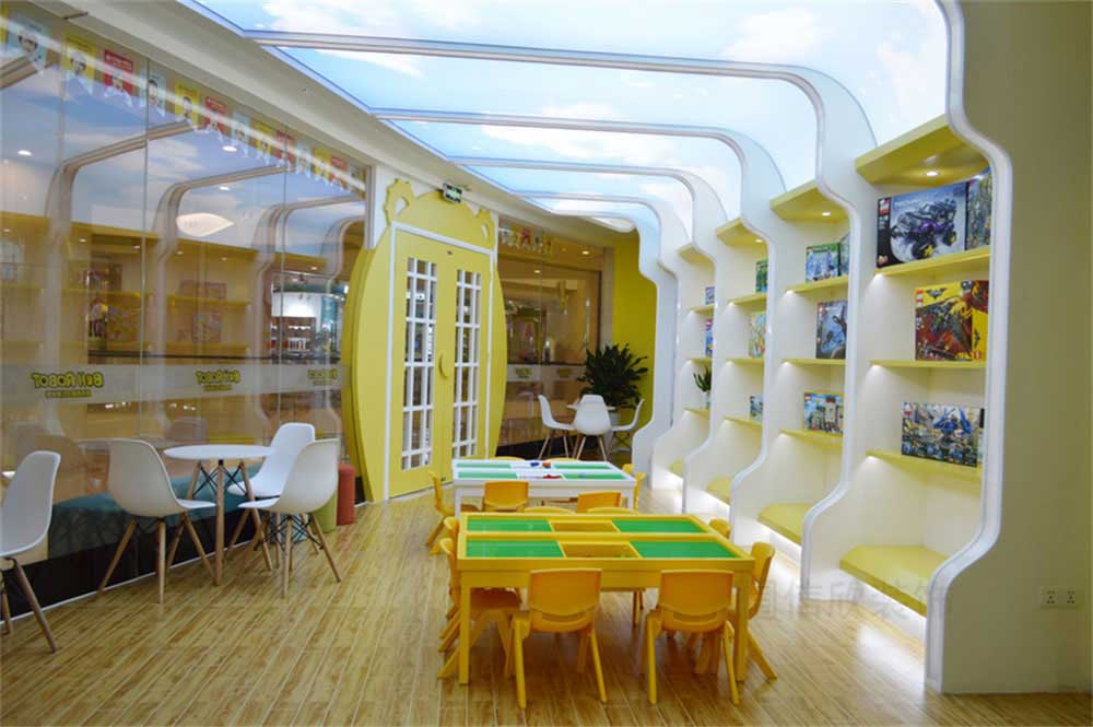 前臺的設計,以白色和黃色為主題,科技感十足的圓形造型,美觀大方,特點十足,讓每一個來到這里的小孩,都會被深深的吸引。