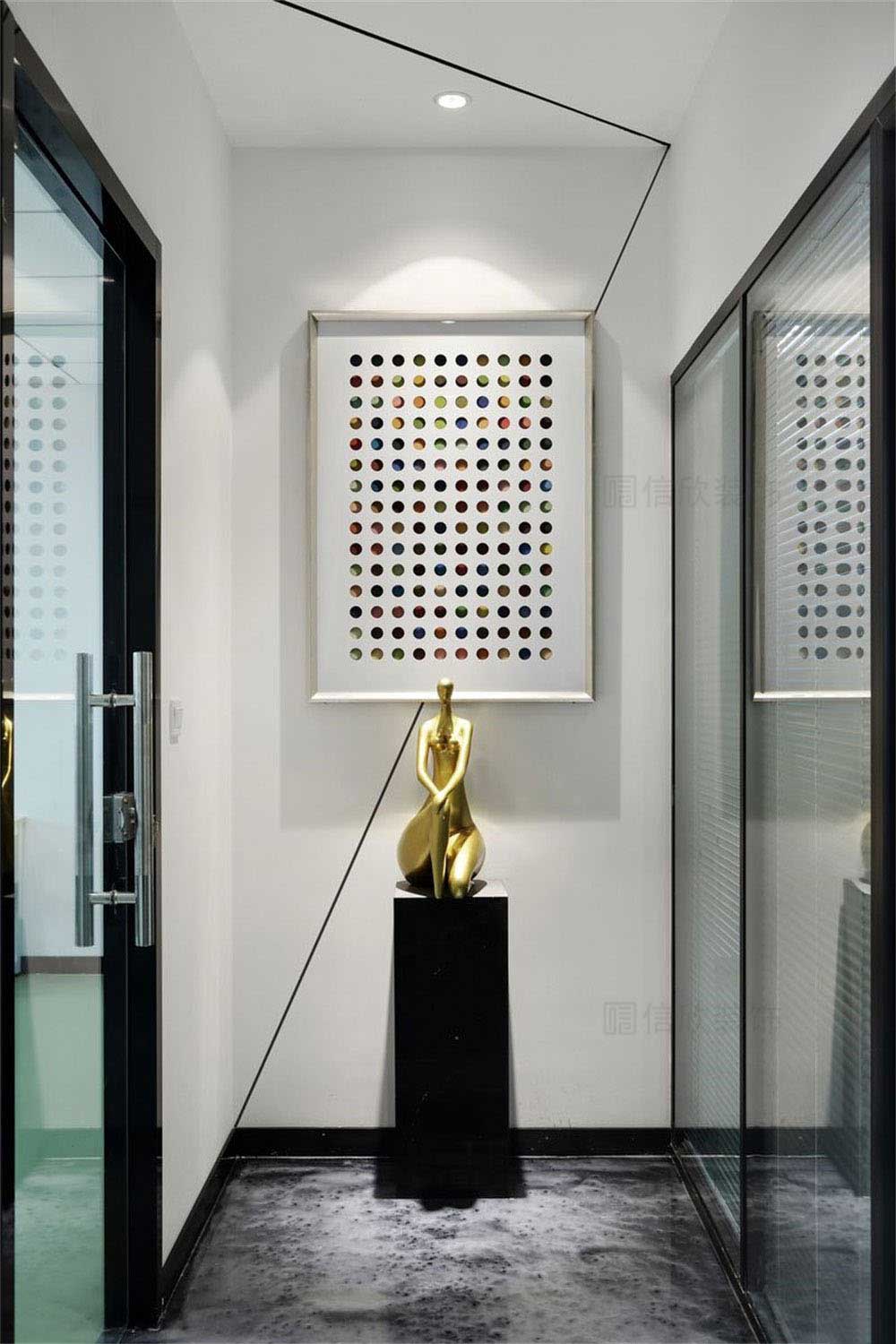 深圳市寶安區(qū)西鄉(xiāng)后視覺設(shè)計培訓(xùn)機構(gòu)墻面在空間色彩上采用了白、黑、紅三個顏色作為主色彩,凸顯教育空間的正式。頂面造型與墻面相連,使得空間更加的整體。 The ceiling design and the wall are connected, making the space seem completed and whole.There are three main colours used in the space; white, black, and red, which highlight the formalness of education.