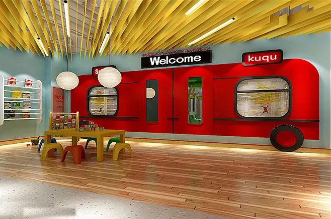幼兒英語教室如海洋般充滿大自然元素,配以溫馨的木質家具。