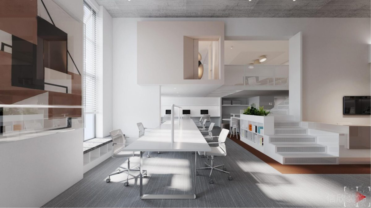 深圳市福田區(qū)皇庭中心的極簡風辦公室設計充滿現(xiàn)代感與個性化。辦公室以極簡主義為設計核心,每個設計元素都精心選取,旨在提升工作效率的同時營造舒適的工作環(huán)境。首先,辦公室的大理石灰白紋路茶水臺設計展現(xiàn)了高雅和實用的完美結(jié)合。大理石的質(zhì)感和紋理賦予空間獨特的高端氛圍,茶水臺的布局則體現(xiàn)了對員工日常需求的體貼關(guān)懷。原木黑色置物柜與大理石茶水臺形成對比,不僅注入自然和溫暖的元素,同時也提供了充足的存儲空間。原木的自然質(zhì)感與黑色的現(xiàn)代感相結(jié)合,不僅實用而且具有裝飾性,為辦公室增添了層次感和視覺吸引力。工業(yè)風天花板是設計的亮點之一,采用簡潔的線條和暗色調(diào),展現(xiàn)出現(xiàn)代工業(yè)風格的獨特魅力。裸露的管道和設施不僅增加了空間的感官體驗,還展示了結(jié)構(gòu)美學的魅力,與其他裝飾元素形成了和諧的對比。辦公桌椅設計以黑白色為主調(diào),紅黃色點綴,簡約而現(xiàn)代。黑白色搭配營造出清晰利落的視覺效果,而紅黃色的色彩點綴則增添了活力和趣味,使辦公空間不僅是工作的地方,更是創(chuàng)意和靈感迸發(fā)的源泉。最后,黑色不銹鋼階梯式樓梯設計不僅實現(xiàn)了空間上的連接功能,更是空間設計的藝術(shù)品。其現(xiàn)代感與工業(yè)風格的特點與天花板的設計相輔相成,為辦公室增添了空間的立體感和動態(tài)感,同時也為員工提供了一個視覺上令人愉悅的交流空間。