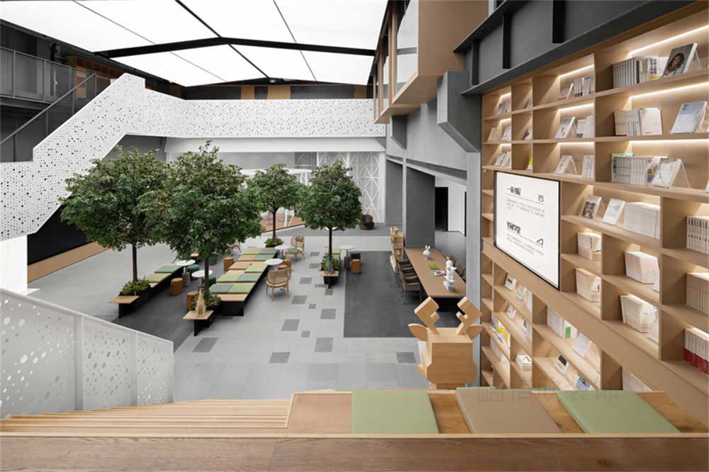 會客區的周圍有書吧、階梯教室和共享廚房三個功能區域,同“會客公園”的概念相輔相成。