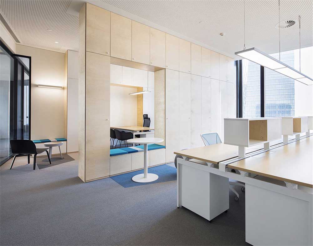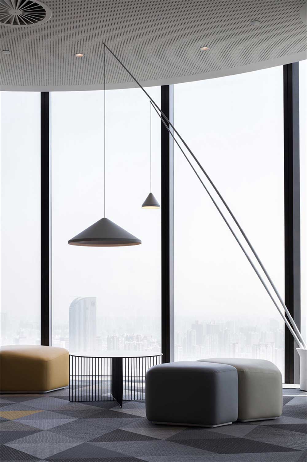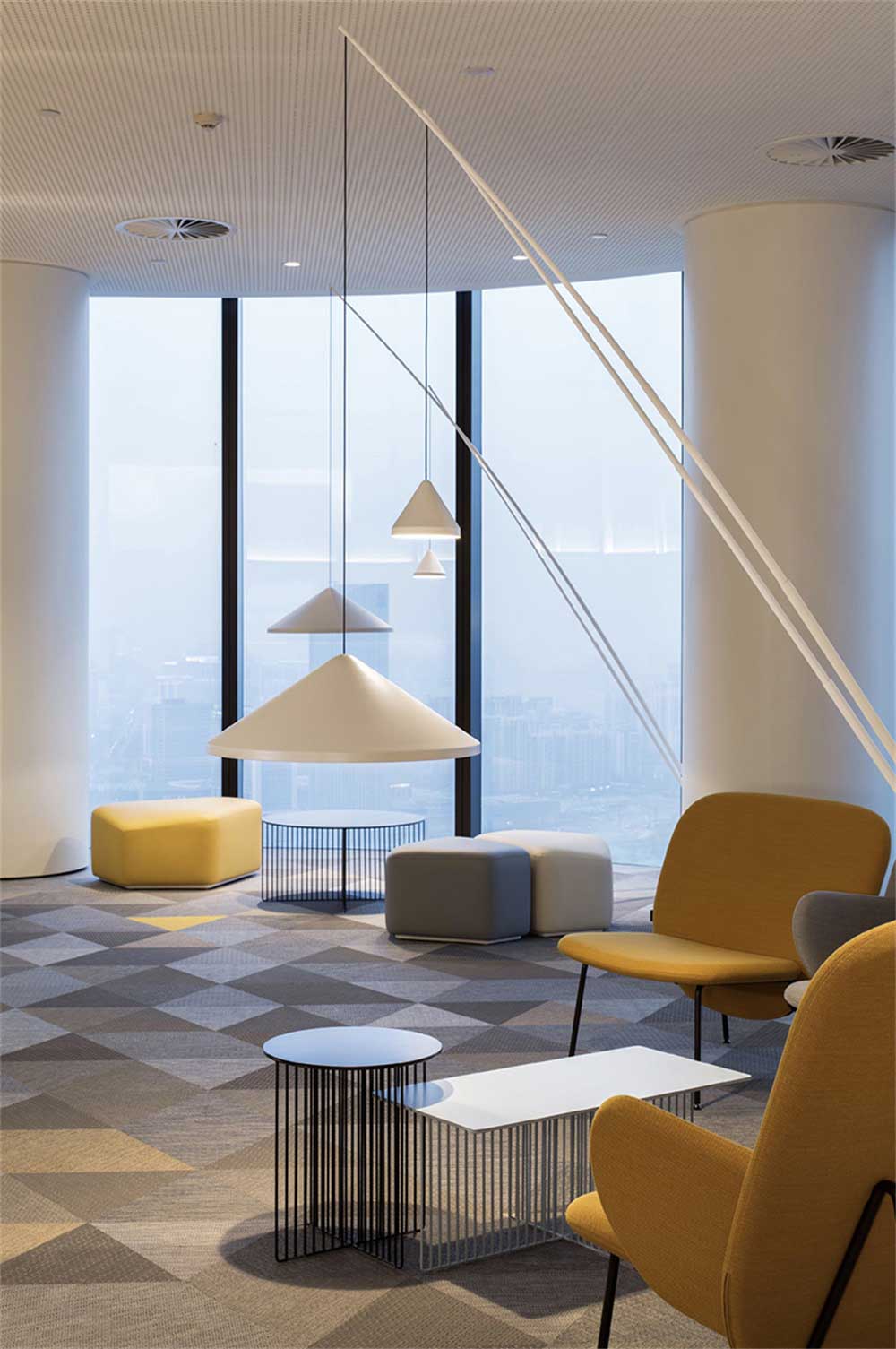 邁科集團現(xiàn)代風格辦公室休息區(qū),通過抬高地臺隔出的小區(qū)域既滿足區(qū)域性的劃分,又感覺很有趣味。