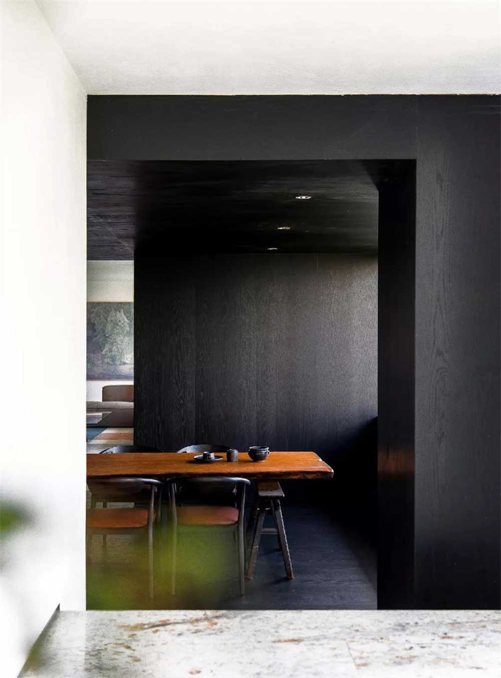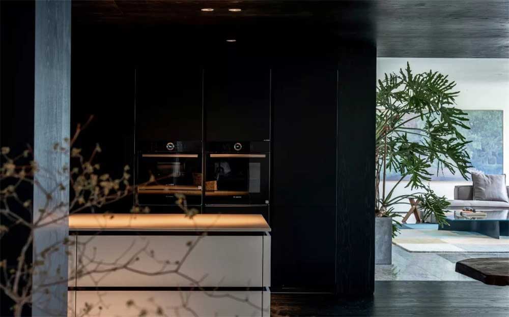 黑色和白色搭配的吧臺區(qū),經(jīng)典的色彩搭配,和整體設計風格的色彩更和諧統(tǒng)一。