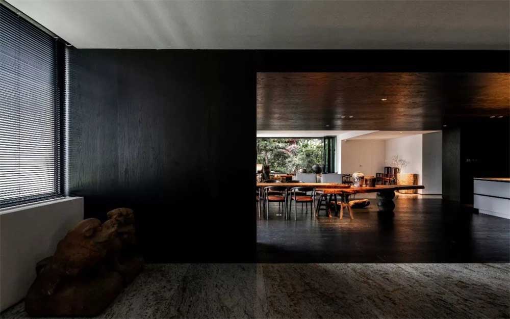 設計理念:本案是一所新中式風的辦公室裝修設計案例,由信欣裝飾公司設計團隊親自操刀設計,征得業(yè)主的同意,在滿足功能性需求的同時,以新中式的理念入手,讓唐詩的美感融入到設計,以情入鏡,以景入畫,創(chuàng)造出一副符合中國古典美學的現(xiàn)實中的山水畫作。功能性區(qū)域包括,辦公區(qū),洽談區(qū),吧臺區(qū),弱化了傳統(tǒng)的分區(qū),以全景的設計方式,來體現(xiàn)既滿足辦公室的實用性,又能放飛自我,不受空間的束縛。大廳黑色的原木風,長條形天然實木辦公桌,微弱的光影變化等效果,呈現(xiàn)出一副古色古香的畫卷。洽談區(qū)則以室內(nèi)景觀,和大開門式的窗戶把室外的景色結(jié)合到了室內(nèi),用灰色大理石地磚略做空間的區(qū)分,實木的中式家具的精巧擺放,塑造出厚重感和品質(zhì)感的完美設計。