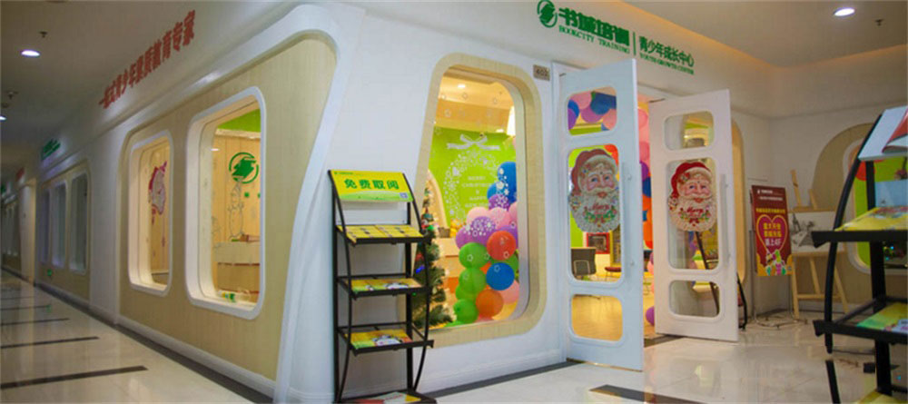 原木色和綠色,用弧線分割的背景墻,看上去猶如清晨破土而出的小草,生機勃勃,有著生命的頑強活力。