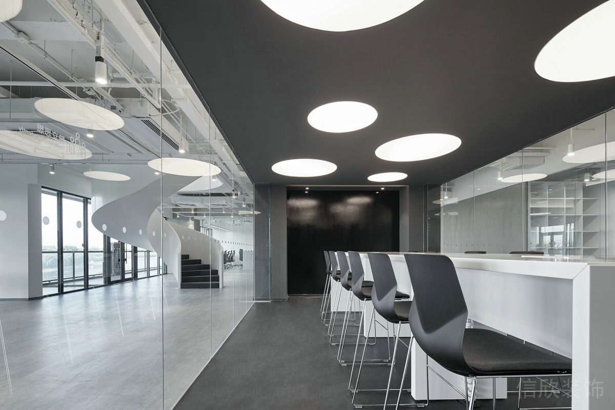 休閑小吧臺的裝修設計上巧妙地分割和融合了區域,把辦公區的繁忙沉悶感降低了很多,是一個工作和休閑相結合的創意設計。