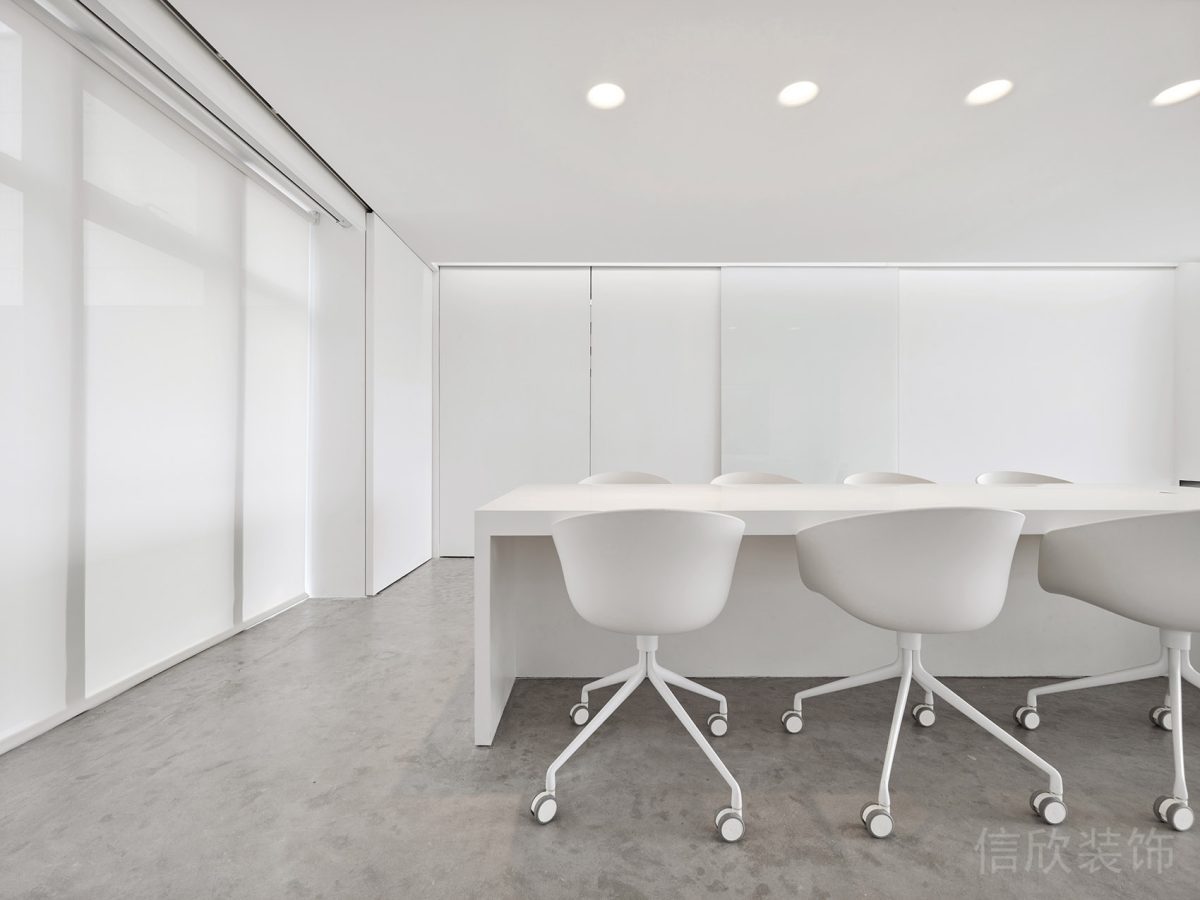 辦公室裝修設(shè)計地面采用木地板墻面白色烤漆板柜體做開洞設(shè)計橢圓形的造型增加設(shè)計感。