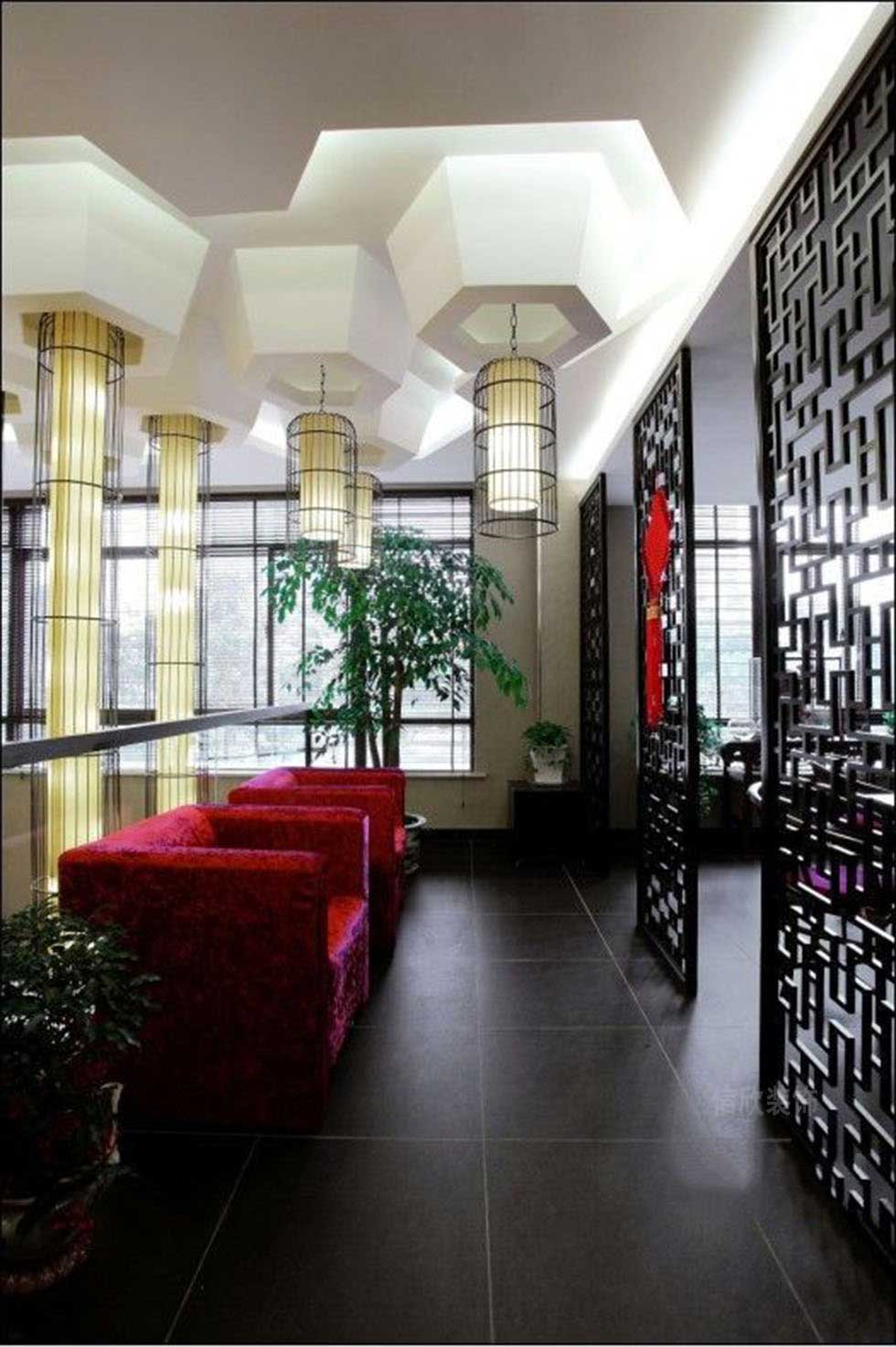 大廳的設計理念,以假山,根雕茶幾等最能代表中國傳統(tǒng)文化的元素,既能體現文化的厚重感,茶道更有迎客之意,加之代表古代君子之風的竹子作為裝飾,頗有坦蕩,光明磊落的經商之道寓意。