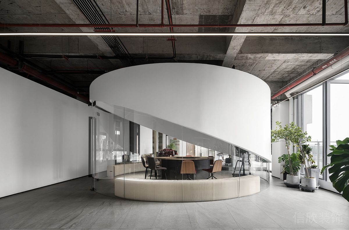 深圳鹽田區現代中式風格辦公室裝修設計白色藝術雕塑