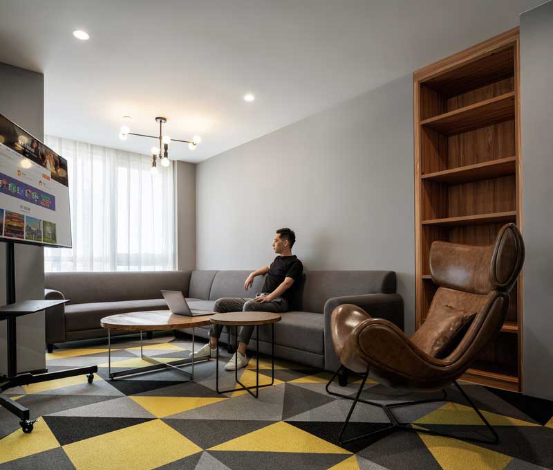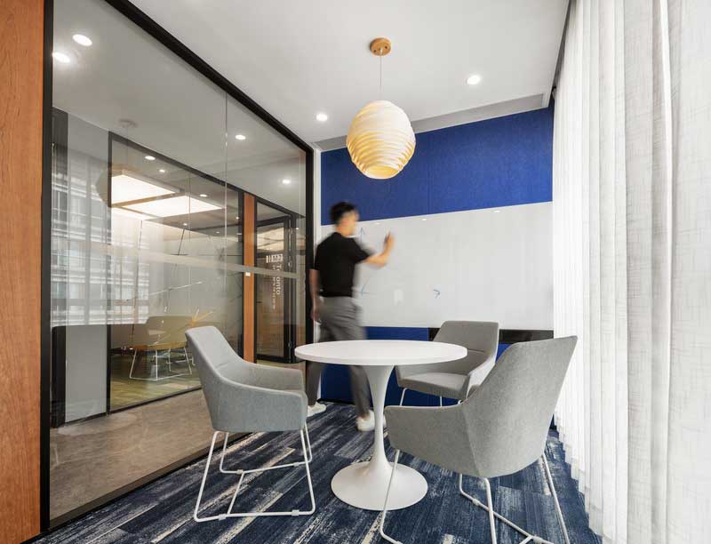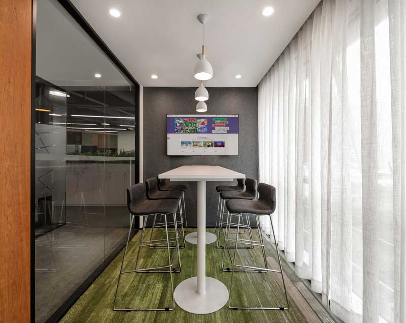 我們的目標是讓傳統(tǒng)辦公室轉(zhuǎn)變?yōu)橐粋€吸引年輕人的環(huán)境,將更多工作方式的選擇權交還于員工,提供更有效的支持。豐富多樣的小型討論間,溫馨、自由、隱私,不僅革新了工作方式,也給予了整個辦公空間有趣的節(jié)奏感