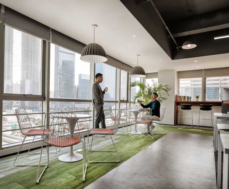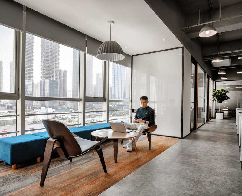 無論在開放的工位或是休閑區(qū),城市景觀一覽無余,以模糊邊界的姿態(tài)讓室內(nèi)空間與自然環(huán)境交融,提供了良好的采光及視野,給予了工作生活舒適的視覺體驗。