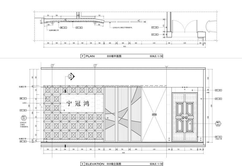 深圳南山現(xiàn)代中式風(fēng)格辦公室—形象墻立面圖