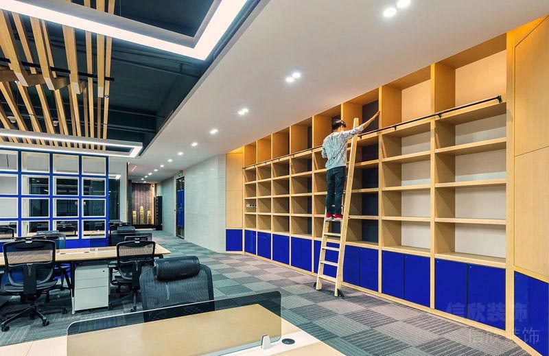運(yùn)用大面積的書(shū)柜,擴(kuò)展空間的橫豎立體感和規(guī)整性,從而增添空間的時(shí)尚個(gè)性氣息;也極大增加了儲(chǔ)存空間。大面積的書(shū)架或是滿載富含知識(shí)的書(shū)籍,或是擺放精美的瓷器、藝術(shù)陳設(shè),或是擺放公司的榮譽(yù)證書(shū)等,這些物品都可以將公司的內(nèi)容和文化體現(xiàn)出來(lái)。