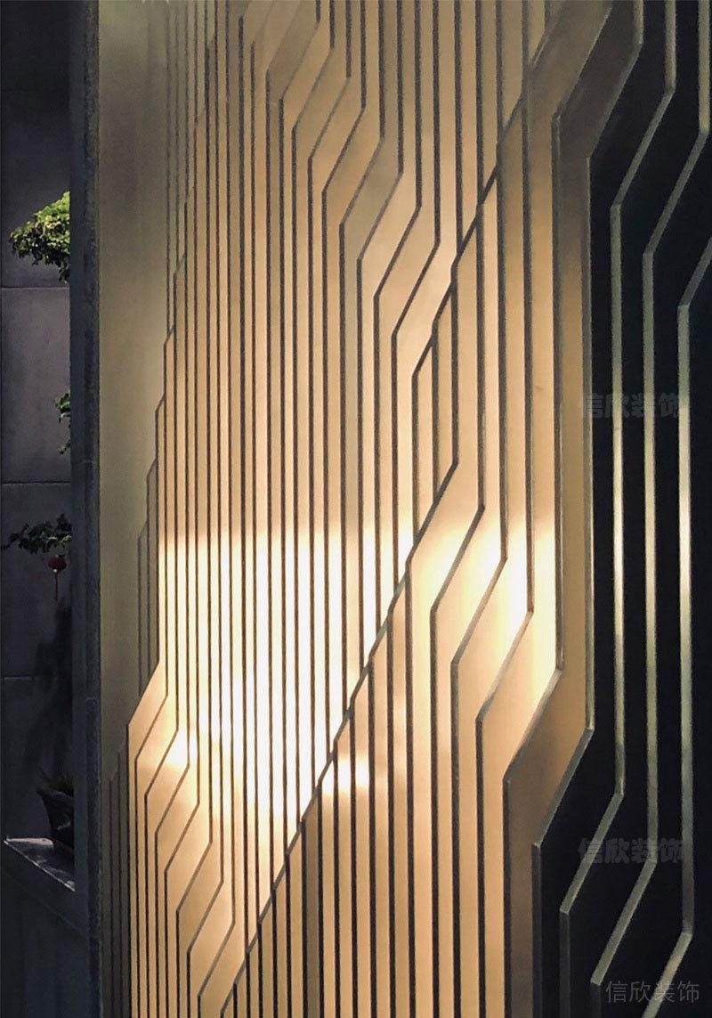 深淺木色鋁扁通相互交錯(cuò),居中對(duì)稱,在統(tǒng)一中有變化。